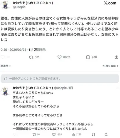 銀魂女子「銀魂が人気なのは女キャラが自立していて性的消費されず読者がストレス感じないから」👈共感多数wwwwwwwww