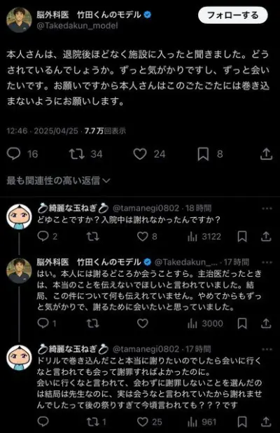 【悲報】脳外科医 竹田くんのモデル「本人さんはこのごたごたには巻き込まないようにお願いします」
