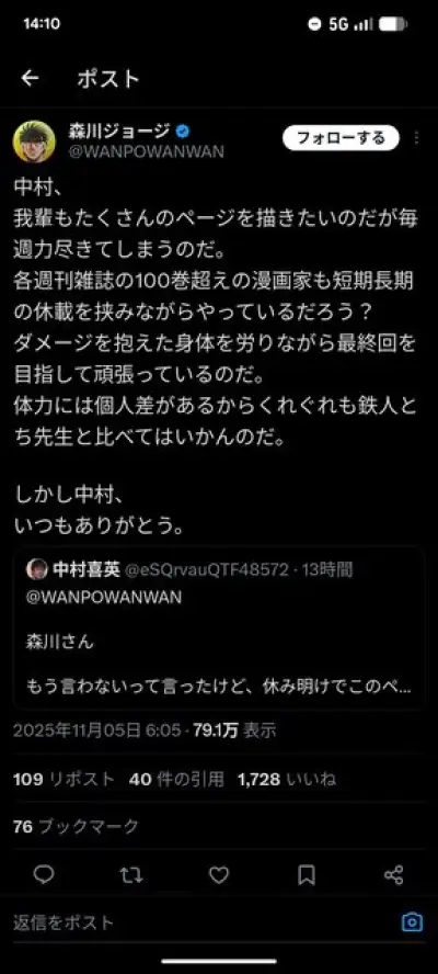 【画像】ファン「はじめの一歩は仕事舐めてる。このままじゃベルセルクみたくなる」森川ジョージ「完結しなくても楽しめればいいだろ」