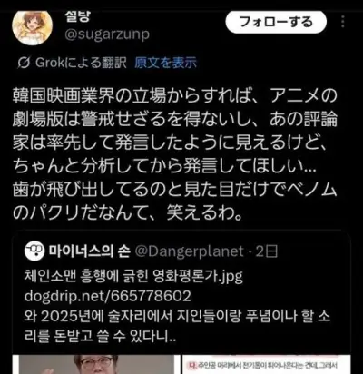 韓国映画評論家「チェンソーマンが韓国でこんだけ流行ったのは観客の『レベル』が下がったから」→炎上