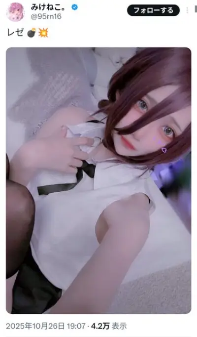 【画像】みけねこさん「チェンソーマンのレゼのコスプレしてみた!w」