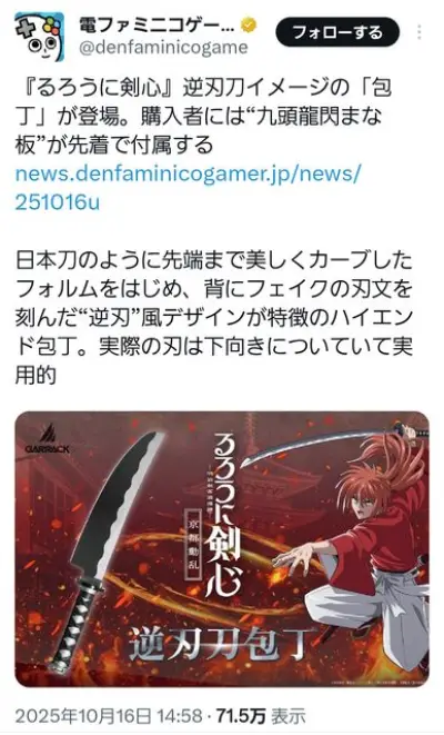 【悲報】緋村剣心の「逆刃刀」包丁、逆刃刀じゃない