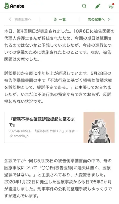 漫画「脳外科医竹田くん」作者vs竹田くん裁判、竹田くん側が欠席wwwwwww