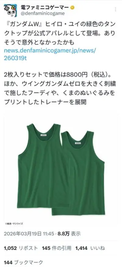 ヒイロ・ユイのタンクトップが公式アパレルグッズとして登場。