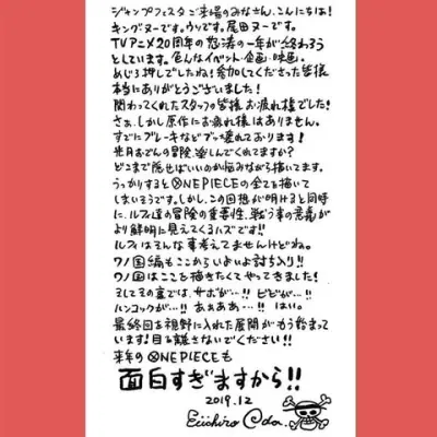 尾田っち「最終回を視野に入れた展開がもう始まっています!目を離さないで!!」