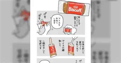 ロータスのカラメルビスケットを破壊してアイスを作るレシピ漫画が美味しそうだしかわいい→ビスコフファンが続々と集ってくる