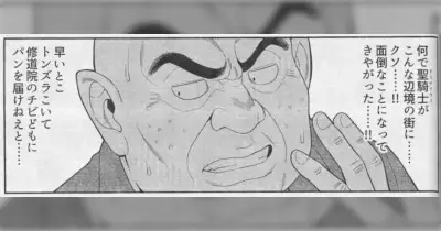 存在しない漫画の1コマbotの悪そうなのに善人に見える聖騎士のおじさんがいい味、聖騎士の解釈もいろいろ