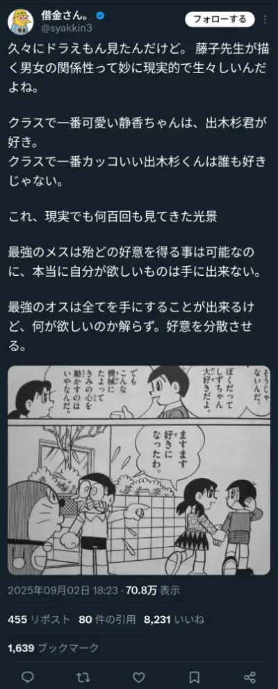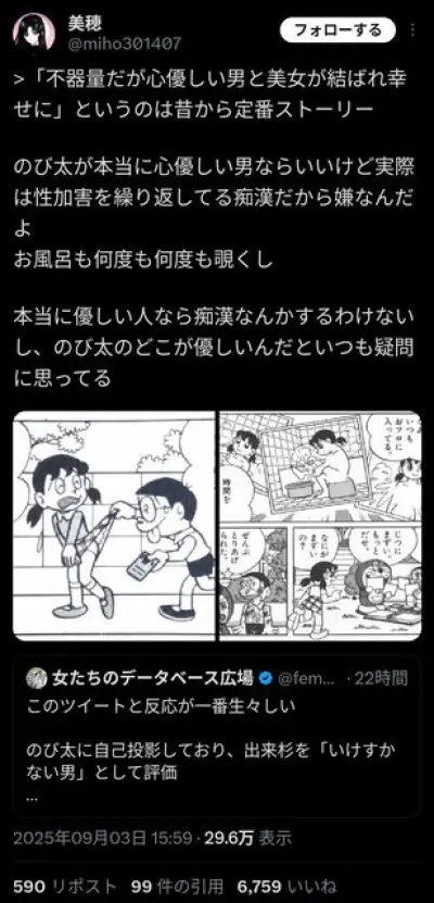 【画像】識者「ドラえもんで描かれている男女の関係性が生々しすぎる。」