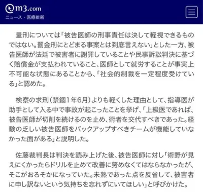 【脳外科医 竹田くん】裁判長「被害者に謝罪し社会的制裁も既に受けている執行猶予3年禁錮1年」