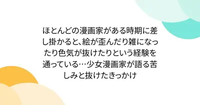ほとんどの漫画家がある時期に差し掛かると、絵が歪んだり雑になったり色気が抜けたりという経験を通っている…少女漫画家が語るその頃の思いと抜けたきっかけ
