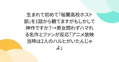 生まれて初めて『桜蘭高校ホスト部』を1話から観てますがもしかして神作ですか?→男女問わずハマれる名作とファンが反応「アニメ放映当時は2人のハルヒがいたんじゃよ」