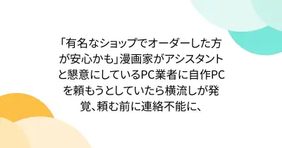 「有名なショップでオーダーした方が安心かも」漫画家がアシスタントと懇意にしているPC業者に自作PCを頼もうとしていたら横流しが発覚、頼む前に連絡不能に、