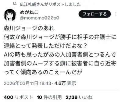 【悲報】森川ジョージさん、被害者のために動くも漫画家から嫌われてしまう