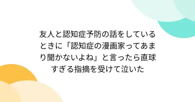 友人と認知症予防の話をしているときに「認知症の漫画家ってあまり聞かないよね」と言ったら直球すぎる指摘を受けて泣いた