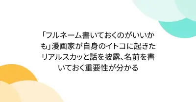 「フルネーム書いておくのがいいかも」漫画家が自身のイトコに起きたリアルスカッと話を披露、名前を書いておく重要性が分かる