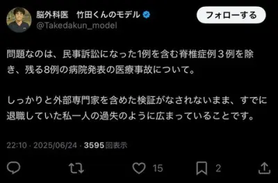 脳外科医 竹田くんのモデル「問題なのは、私一人の過失のように広まっていることです。」