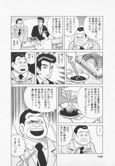 美味しんぼ「わさびは醤油で溶かずに刺身の上に乗せて食え」
