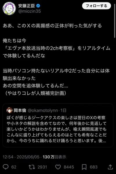 アニメ監督「俺たちは今『エヴァ放送当時の2ch考察板』をリアルタイムで経験している」