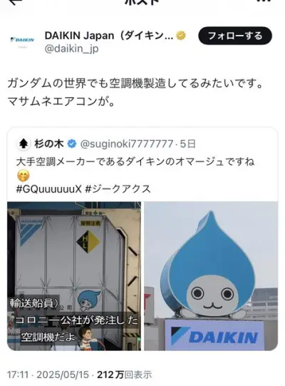 【悲報】ダイキンさんジークアクスの炎上目的で凸してくるアホを華麗にスルー