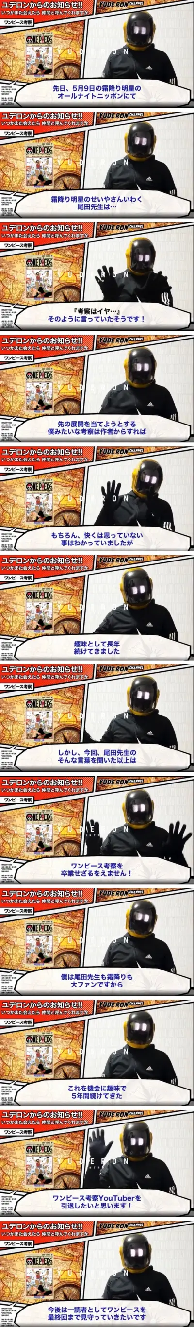 【速報】ワンピース考察系YouTuberさん、尾田先生の「考察イヤ」発言を受けて引退www