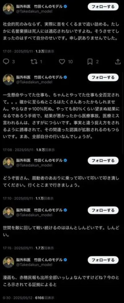 【悲報】脳外科医 竹田くんのモデル、一週間ぶりの投稿でメンヘラ化する