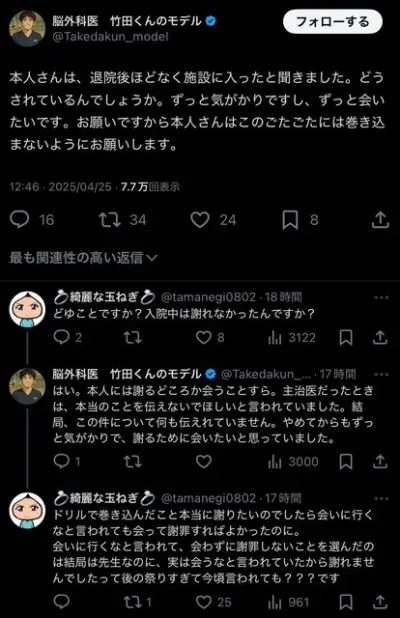 【悲報】脳外科医 竹田くんのモデル「本人さんはこのごたごたに巻き込まないで」「今も会いたい」