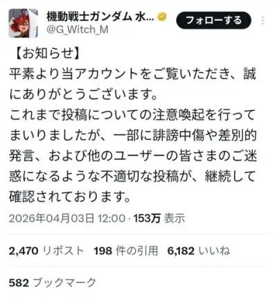 【悲報】機動戦士ガンダム 水星の魔女公式X、アンチにブチ切れ長文声明wwwwwwwwwwwwwwwwwwwwwwwwwwwww
