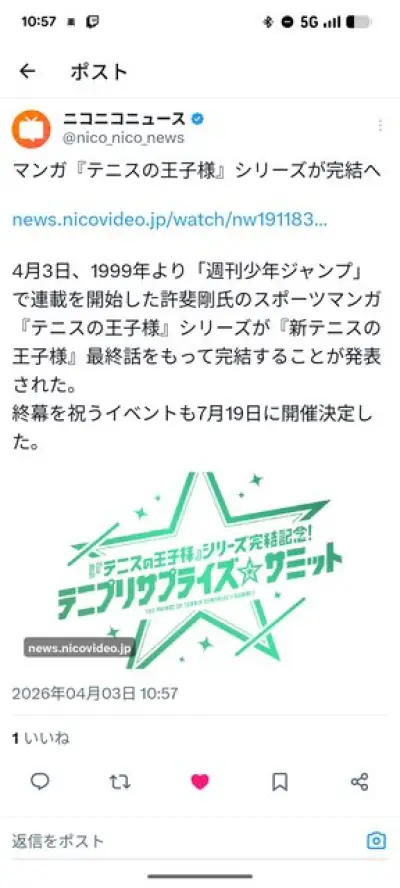 「テニスの王子様」シリーズ、ついに完結へ!!27年の歴史に幕を下ろす!!