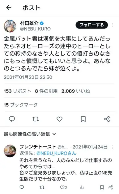 村田雄介「金属バットは人としての値打ちがないネオヒーローに憤慨すべき」