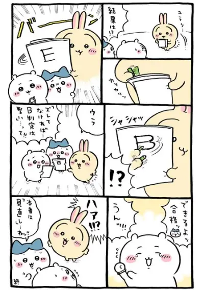 【朗報】ちいかわ、草むしり検定5級E判定だったのが採点ミスが発覚しB判定になる