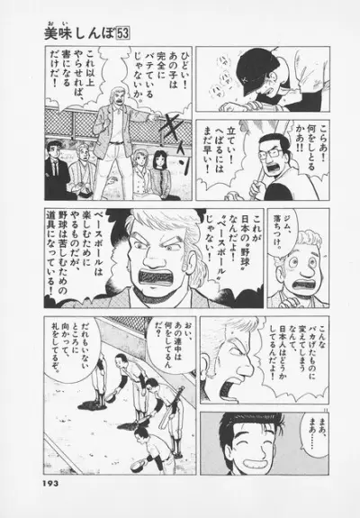 美味しんぼの野球回、まともな事を言ってる助っ人外国人を悪者にする