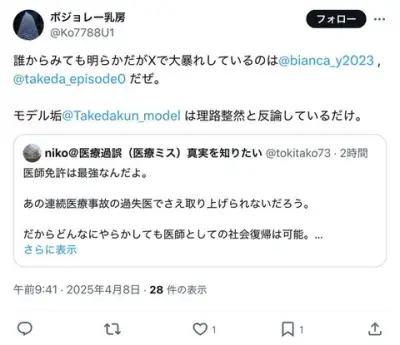 脳外科医 竹田くん擁護勢「竹田くんのモデルは理路整然と反論してるだけ、誰から見ても明らかに」