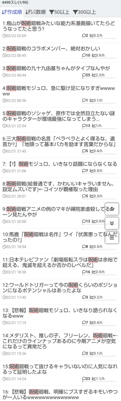 【悲報】呪術廻戦のスレ、急に伸びなくなる