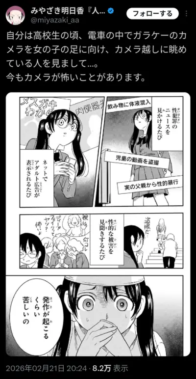 【画像】人気女性マンガ家さん、性的被害を見聞きしてから街に出ることが出来なくなってしまう…