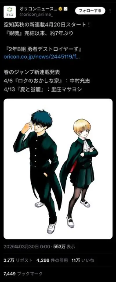 『銀魂』の空知英秋、約7年ぶりに新連載wwwwwwwwwwwwwwwwwwwwwwwwwwww
