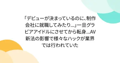 「デビューが決まっているのに、制作会社に就職してみたり...」一旦グラビアアイドルにさせてから転身...AV新法の影響で様々なハックが業界では行われていた