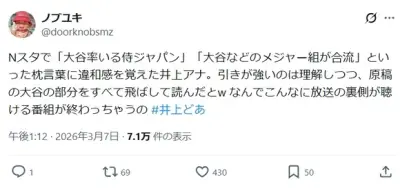 TBS・井上貴博アナ、大谷ゴリ推し原稿を勝手に変えて読んでいた