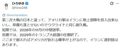 ひろゆき軍師「おいらがイランなら長期戦に持ち込んで米国内の反戦ムード高めます」