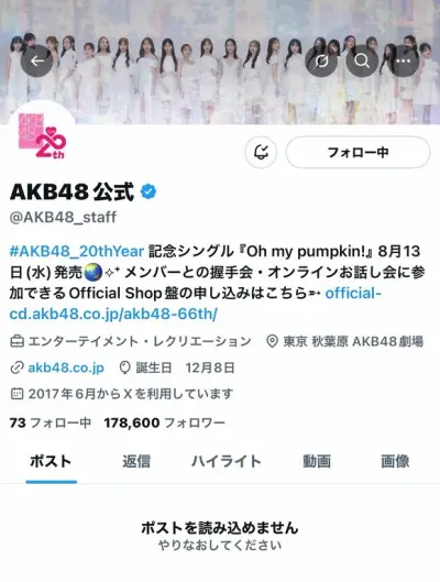【爆笑】AKB公式がX(旧ツイッター)から垢BANを喰らうwwwwwwww