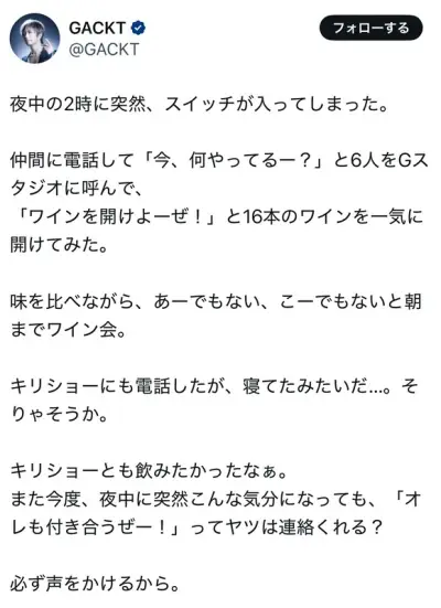 【画像】GACKTさん(52)、アレな先輩と化してしまう