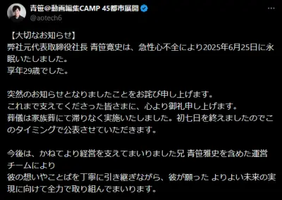 【訃報】「令和の虎」出演の実業家・青笹寛史さんが急性心不全で死去 29歳 兄・雅史氏が発表