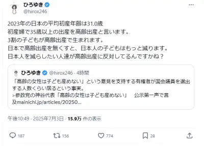 ひろゆき「高齢出産に反対してる人達は日本人を減らしたい反日思想の持ち主です」