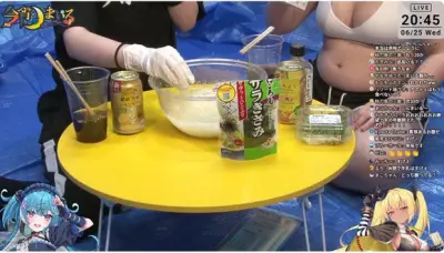 【画像】デカパイVTuberさん、ムチムチボディを晒しながらそうめんを食べる配信