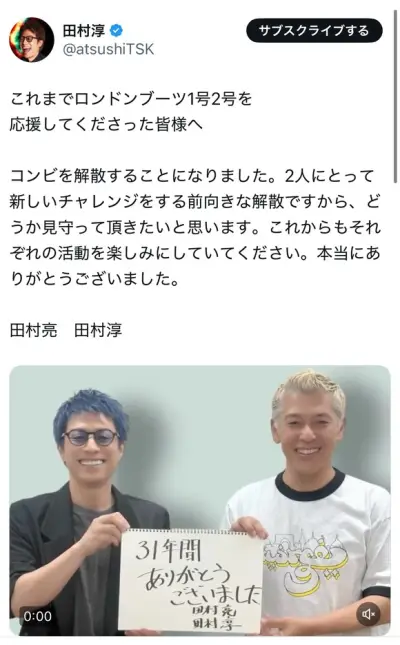 【悲報】ロンドンブーツ1号2号、電撃解散