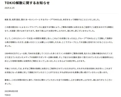 TOKIO解散を発表!!!!