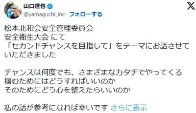 「チャンスは何度でも、さまざまなカタチでやってくる」山口達也氏が発信