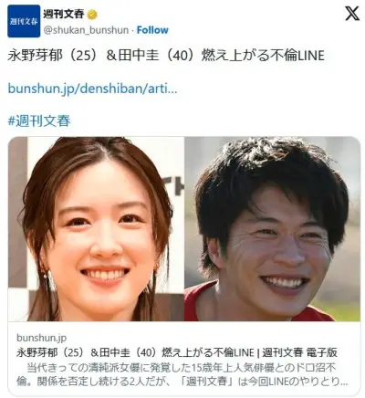 【文春】永野芽郁(25)&田中圭(40)燃え上がる不倫LINE