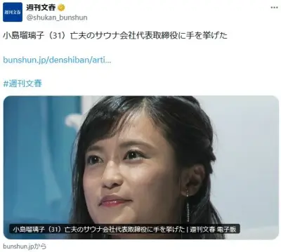 【文春】小島瑠璃子さん、亡き夫のサウナ会社代表取締役に手を挙げる