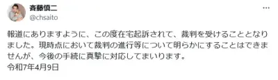 【芸能】元ジャンポケ・斉藤慎二「この度在宅起訴されて裁判を受けることとなりました」 8カ月ぶりにX更新