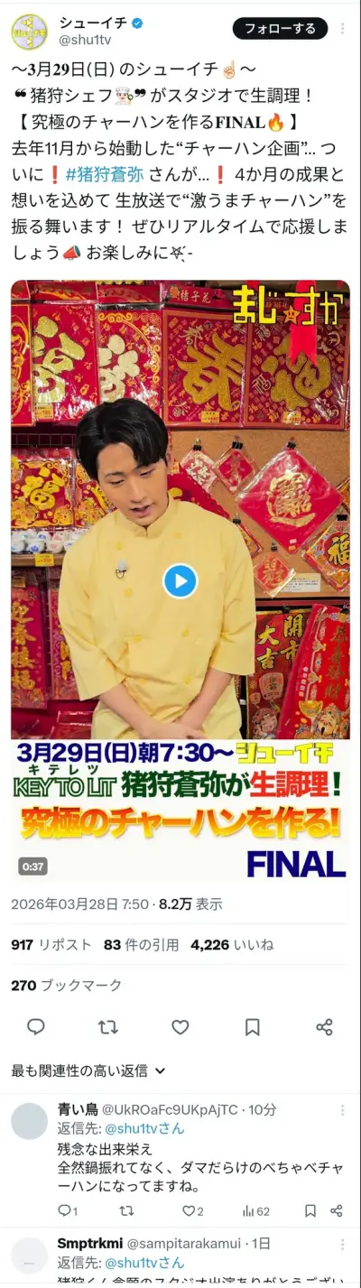 【悲報】日テレで放送事故…ジャニーズタレント「究極・肉炒飯作ります」→ベチョベチョの何か完成